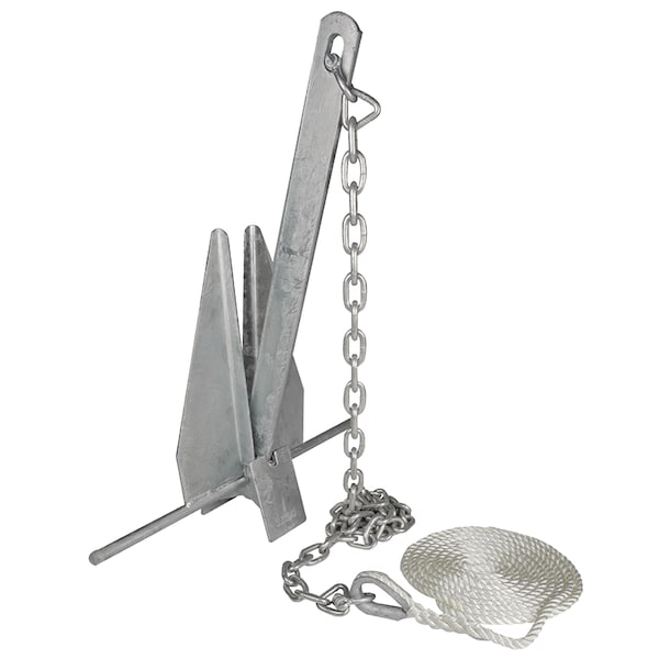 Kit Contains: One (1) Anchor One (1) Anchor Lead Chain One (1) Nylon Anchor Line Anchor Lead Chain with Shackle: Hot Dipped Galvanized proof coil anchor lead chain 1/4" x 4' with two (2) 5/16" shackles. Nylon Anchor Line: 3/8" x 150'Anchors: Each anchor is hot dipped galvanized for maximum corrosion protection For boats 25'-30'