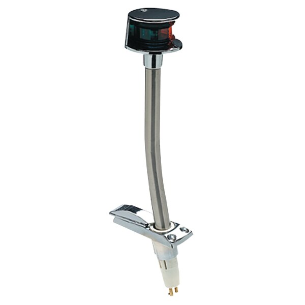 1-mile visibility for sail or powerboats under 39'. 12V DC - 6 CP. Pre-drilled with three countersunk holes to accommodate #8 screws. Base: 1-5/8" x 4". Head and pole are triple chrome plated zamak. Non-corrosive plastic socket. 10" in height.