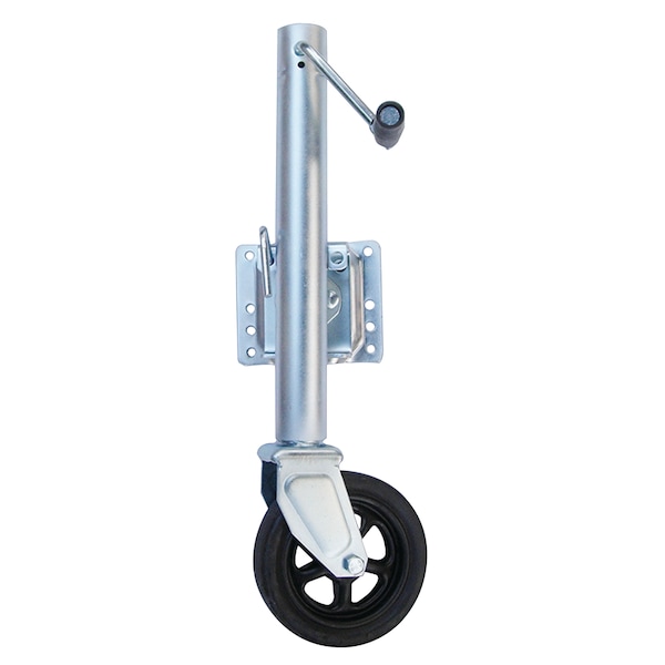 Swings from vertical position to horizontal for fast getaway. Spring loaded latch locks and releases the jack from one position to the other. Lift travel: 10". Maximum lift 24". Individually boxed.24" Extended. Fits up to 3" x 5" Trailer Tongue. Manufactured of corrosion resistant steel.