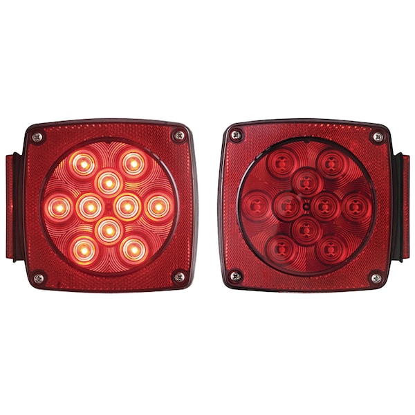 Contains two LED tail lights: (1) 6-function: stop, turn, tail, rear reflex, side marker, side reflex (1) 7-function: LED tail light with license light Meets the requirements of SAE/DOT/FMVSS/CMVSS standards when properly installed; Traditional style fits many applications; Waterproof performance; Stud mount lights mount on 2" centers; Hard wired, with separate ground wire; Mounting hardware included