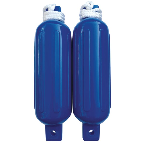 Includes two 3/8" x 5' double braided MFP fender lines with a reinforced nylon mesh loop on one end and two twin eye fenders. The fenders are Roto-molded and manufactured from Marine Grade vinyl for superior strength, cushioning and a high gloss finish. Recessed valve to prevent valve lug from pulling away from fender. Valve plug housing molded into fender. Heavy-duty integral lugs for longer durability. Roto-molded for even wall thickness. Unique quality ribbed material ensures softness. For boats 20'-25'