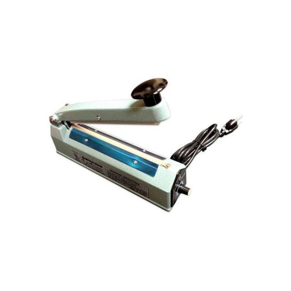 The tew impulse sealers seal poly bags and other thermoplastic materials quickly and efficiently without any warm-up time. Depending on the model of the machine, material up to 16" wide and 10mil total thickness can be sealed. The sealers are equipped with a plug-in electronic timer that controls the different sealing times needed for the varying thicknesses of different materials. The timer automatically beeps when the seal is done. Available in 4", 8", 12" and 16" with a 2mm or 5mm seal width. The manufacturer's kit includes two elements and two ptfe covers. Round wire heating elements are available for cut and seal applications. There is no additional charge for the round cut wire. When ordering, add the letters "rnd" to the model number. (example: a 12 hand sealer with round cut wire - tish-300rnd). easy to operate: set the timer; insert the bag between the sealing bars, then press down and release. We recommend that the user hold the sealing arm down for an additional second or two to ensure enough time for the bag to set and cool.