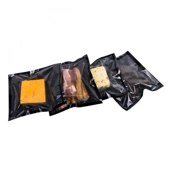 FEATURES Clear multi layer barrier film Low oxygen transfer rate high barrier Colors available cleargold or clearblack Packaged in 1,000 or 2,000pcscase Thickness 3mil Various sizes available Will not work for home units like FoodSaverOur 3 Mil vacuum pouches also come in a metallic black and metallic gold for high end look and upscale packaging The bags are BPAfree and FDA USDA approved for direct contact with food