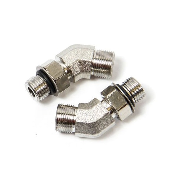 -5 ORB x 3/8 Inch Tube; 45 Degree Elbow; Silver; Stainless Steel; Set Of 2