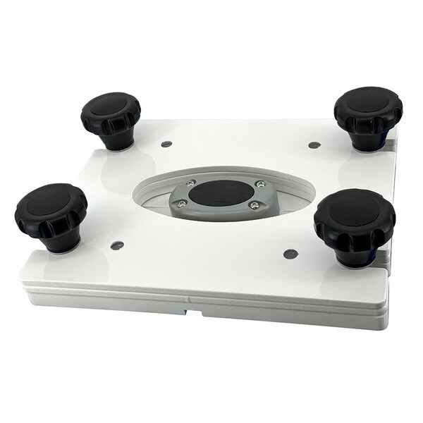 Removable Base for Pedestal Mounts with 7x7 Base Plate - White These innovative mounts save time, money, and headaches for many different types of boat owners. Designed with a self-draining waterproof base, these removable bases make removing/servicing/securing/installing high-value marine electronics easier than ever. Four captive knobs for easy and quick release without fear of losing a knob.Note: The black knobs are captive so they will not fall off.