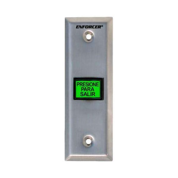 Illuminated green "PUSLM-SH-TO-EXIT" button. Can replace with included "PRESIONE PARA SAL