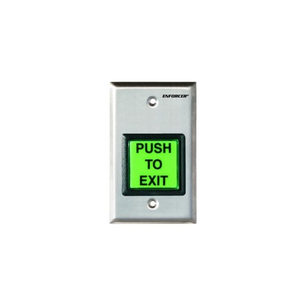 Single Gang 2in Illuminated Green Push/Request to Exit Button RTE, Single Gang Wall Plate, Stainless Steel with Timer 1-180 Seconds, SPDT, 12-24V AC\DC
