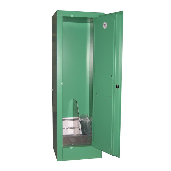 Cylinder Storage Cabinet, Assembled Assembled, Color Red, Compatible Tank Size D, E, Construction Welded, Cylinder Storage Orientation Vertical, Door Closure Type Manual, Door Construction Dual Wall with 1 1/2 in Air Space, Door Handle Type Recessed Pull Handle, Door Type Hinged, Exterior Depth 13 5/8 in, Exterior Height 44 in, Exterior Width 14 in, Finish Urethane, Fire Lined Fire Lining Not Included, Horizontal Cylinder Capacity 0, Includes Fusible Link Assembly, Lock Type Keyed