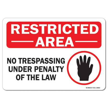OSHA, 12" H, 18" W, Rigid Plastic, 18" W, 12" H, Landscape, No Trespassing Under Penalty of Law