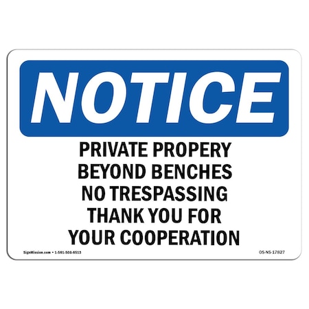 OSHA Notice Sign, 7" H, 10" W, Private Property Beyond Benches No Trespassing Sign, Landscape