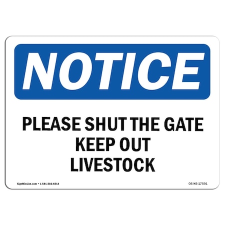 OSHA Notice Sign, 3.5" Height, 5" Width, Please Shut The Gate Keep Out Livestock Sign, Landscape