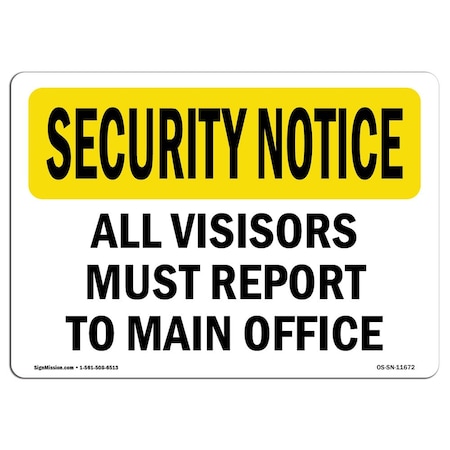 OSHA Security Sign, 3.5" Height, 5" Width, Visitors Must Report To Office, Landscape, 10PK