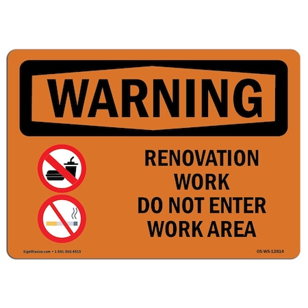 Safety Sign, OSHA WARNING, 12" Height, 18" Width, Renovation Work Do Not Enter Work Area, Landscape
