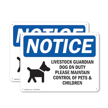 Safety Sign, OSHA WARNING, 14" Height, Aluminum, Livestock Guardian Dog On Duty, Portrait