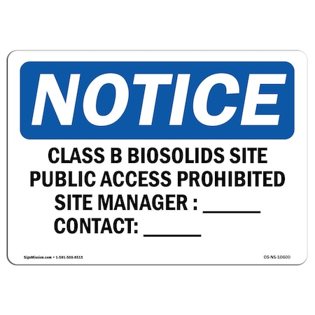 OSHA Notice Sign, 7" H, 10" W, Class B Biosolids Site Public Access Prohibited Sign, Landscape