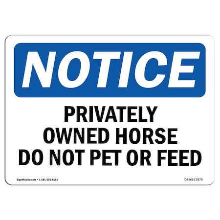 OSHA Notice Sign, 10" H, 14" W, Aluminum, Privately Owned Horse Do Not Pet Or Feed Sign, Landscape