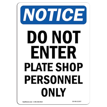 OSHA Notice Sign, 5" H, 3.5" W, Do Not Enter Plate Shop Personnel Only Sign, Portrait, 10PK