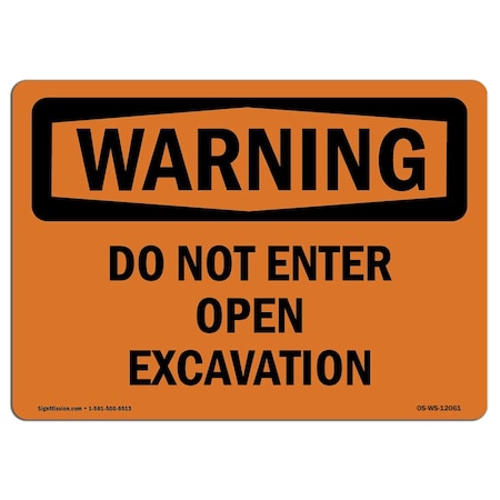 OSHA Warning Sign, 10" Height, 14" Width, Rigid Plastic, Do Not Enter Open Excavation, Landscape