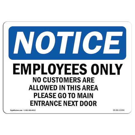 OSHA Notice Sign, 10" Height, 14" Width, Employees Only No Customers Are Allowed Sign, Landscape