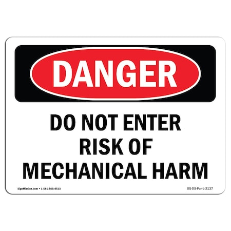 Safety Sign, OSHA Danger, 3.5" Height, 5" Width, Do Not Enter Risk Of Mechanical Harm, Landscape