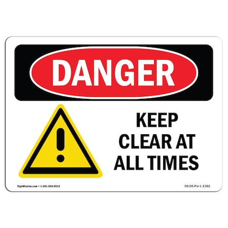 OSHA Danger Sign, 7" Height, 10" Width, Aluminum, Keep Clear At All Times, Landscape, L-1381