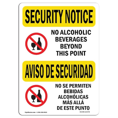 Safety Sign, OSHA SECURITY NOTICE, 7" Height, 10" Width, No Alcoholic Beverages Bilingual, Landscape