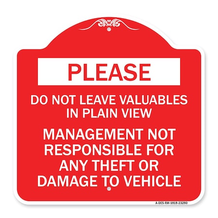 Do Not Leave Valuables in Plain View Management Not Responsible for ANY Theft, A-DES-RW-1818-23280