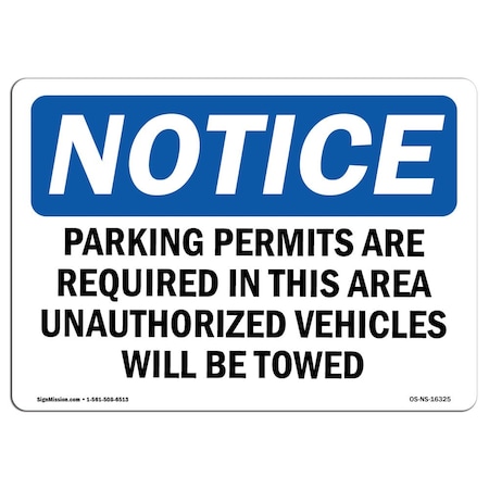 Safety Sign, OSHA Notice, 7" Height, 10" Width, NOTICE Parking Permits Required Sign, Landscape