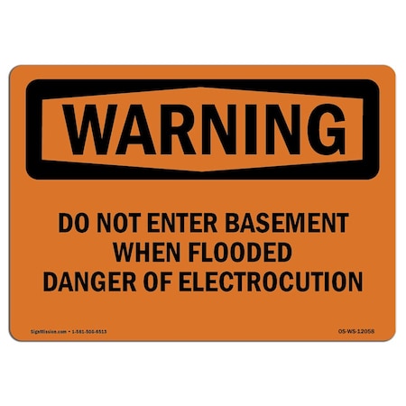 OSHA Sign, 7" H, 10" W, Do Not Enter Basement When Flooded Danger, Landscape, WS-D-L-12058