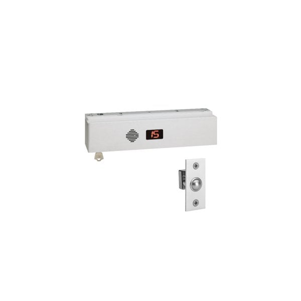 1650lbs EM Lock, Single Door Delayed Egress Electromagnetic Lock, NFPA 101, Fixed 15 Second Egress Delay, Built-in Keyswitch Reset, Door Position Status, Visual and Verbal Countdown and Alarm Tone, 12/24VDC, UL 294 Listed, Grade 1, 628/US28 Satin Aluminum