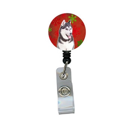 Red Snowflakes Holiday Christmas Alaskan Malamute Retractable Badge Reel