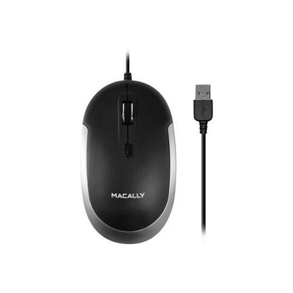 Macally USB Wired Optical Quiet Click Mouse for Mac & PC, Space Gray & Black