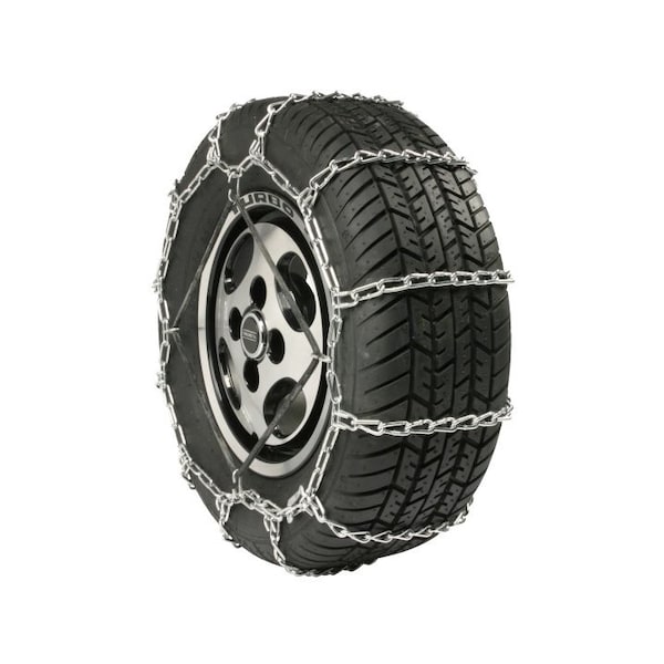 165/85R16; 185x16; 195/80R16; 205/75R16; 205/80R16; 205x16; 215/65R17; 215/70R15; 215/70R16; 215/75R16; 215/80R15; 215x15; 225/50R18; 225/55R18; 225/60R17; 225/65R17; 225/70R16; 225/75R15; 225x15; 7.1x15; 7x14; 8.5x16.5; 8x16.5; H-78x15 Tire Sizes; 0.177 Inch Cross Chain Rod Diameter; 10 Cross Chain/ 55 Side Chain Link; 13.92 Inch Cross Chain Inside Length; Requires Winter Traction Device Tightener (See Required Parts); Pack Of 2