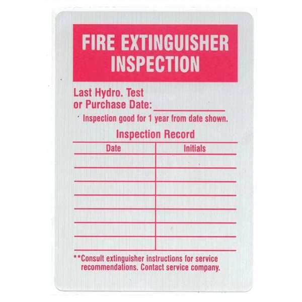 Inspection Label, Adhesive Adhesive, Adhesive Material Acrylic, Adhesive Type Permanent Adhesive, Label Color Red, Silver, Label Diameter Not Applicable, Label Height 4 1/4 in, Label Material Aluminum, Label Shape Rectangle, Label Width 3 in, Language English, Number of Labels 25, Package Type Roll, Preprinted Images Black Header, Preprinted Legend Fire Extinguisher Inspection, Product Type Inspection Label, Subject Matter Fire Extinguisher, Indoor/Outdoor Usage Indoor/Outdoor