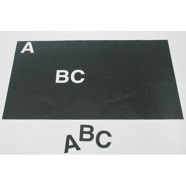 Letter and Number Label Set, Background Color Not Applicable, Character Color Black, Character Height 1 5/8 in, Character Type Letters/Numbers/Punctuation, Characters Included 1 to 9; A to Z; Punctuation, Die Cut Yes, Embossed No, Font Arial Black, Includes (2) L, N, R, S, T, U, (3) A, E, I, O, 1 B, C, D, F, G, H, J, K, M, P, Q, V, W, X, Y, Z, 1 to 9, Punctuation, Indoor/Outdoor Usage Indoor/Outdoor, Material Plastic, Mounting Type Adhesive, Number of Pieces 1, Overall Height 1 5/8 in