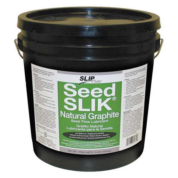 Seed Flow Lubricant (Agriculture), Powder, Seed Slik, SEED SLIK, Net Fill 10 lb, Container Size 10 lb, Lubricant Container Pail, Graphite, Graphite Primary Additive, Min. Operating Temp. -75 Degrees F, Max. Operating Temp. 700 Degrees F, NSF Rating Not Rated, 50 State VOC Compliant Yes, VOC Content 0 Percent, Lubricant Color Black, Odorless Yes, Non-Flammable Flammability, Non-Flammable, Flash Point None, Standards RoHS, Not USDA Certified Biobased Product USDA Certified Biobased Product