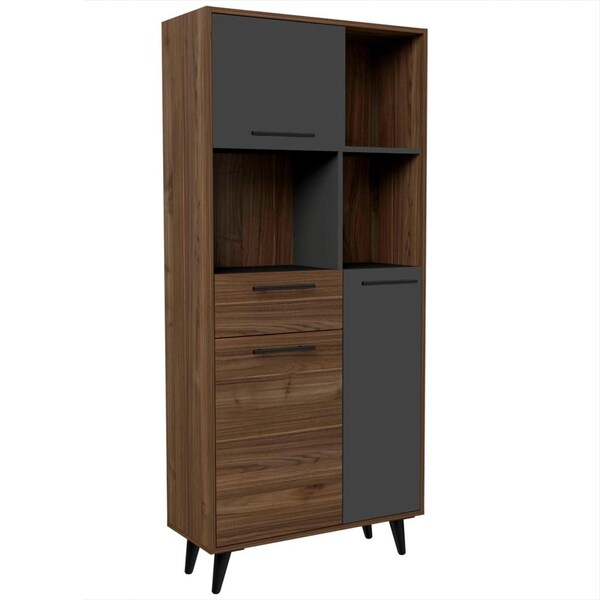 This charming contemporary bookcase has open shelving to show off some of your favorite items while also featuring concealed compartments for everything else. Clean horizontal lines and stylish conical legs give this piece a sleek elevated silhouette. Carefully designed with affordability, style, and creative storage solutions in mind.