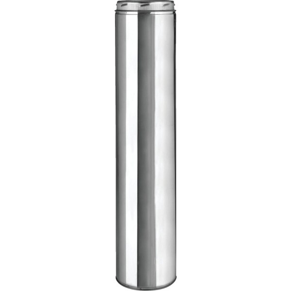Stainless steel outer casing and inner liner. Double-wall pipe with solid pack insulation. Tested to withstand 2100 F (degree Fahrenheit). UL (Underwriters Laboratories) listed. This test helps to prevent product damage or structural hazard during brief periods of this excessive chimney temperature. Normal temperature is 1000 F. Pipe Data: Minimum clearance to combustibles - 2. Stainless steel thickness: Inner lining and outer casing - .012; couplers - .016. Insulation density - 23 lb/cu ft (pounds per cubic foot). Insulated pipe lengths are furnished with a Locking Band (preassembled with captured nut and screw).