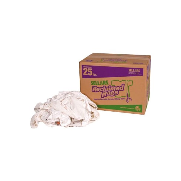 25lb box of reclaimed white knit rags contain white knit material from t-shirts, polo shirts or similar knit apparel. White rags are cut to wiper size with zippers and buttons removed. Often preferred for wiping applications that include water, grease, oil or paint. Ideal wiping cloth for wiping applications where consistency of material and size of wiper can vary. Economical solution for general industrial, machine shop and auto applications. All-purpose soft and durable wiping cloth will absorb both water and oil based fluids. Ideal for vehicle/fleet maintenance, asphalt road, grease and oil applications, roofing and painting. Reclaimed white knit rags are cut-up and sorted knit material such as t-shirts, polo shirts or similar knit apparel that typically comes from not-for-profit or charitable organizations. Note: boxes contain rags of varying sizes, type and composition within each fabric family.