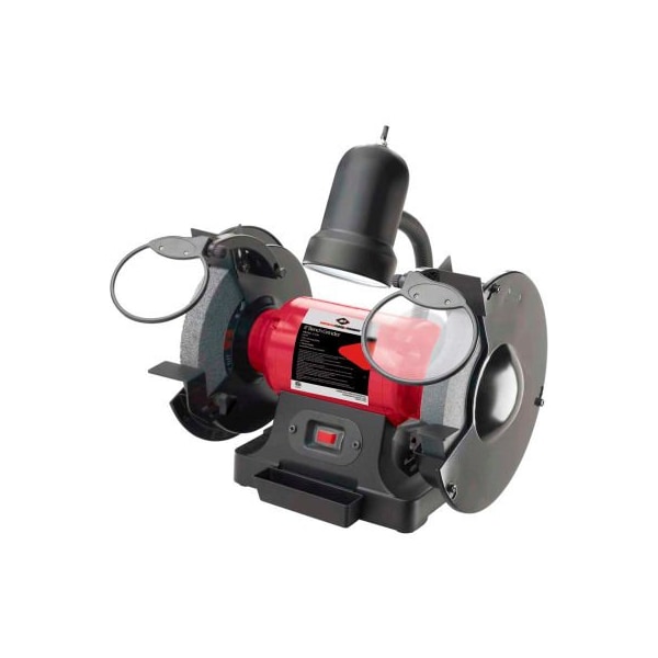 American forge & foundry 8inin bench grinder, 3/4 hp - 31520 this bench grinder features an adjustable steel work rest, cast aluminum base, water tray, dust proof switch and includes one standard safety glass and one magnifying safety glass, with a large flexible work light bulb not included.