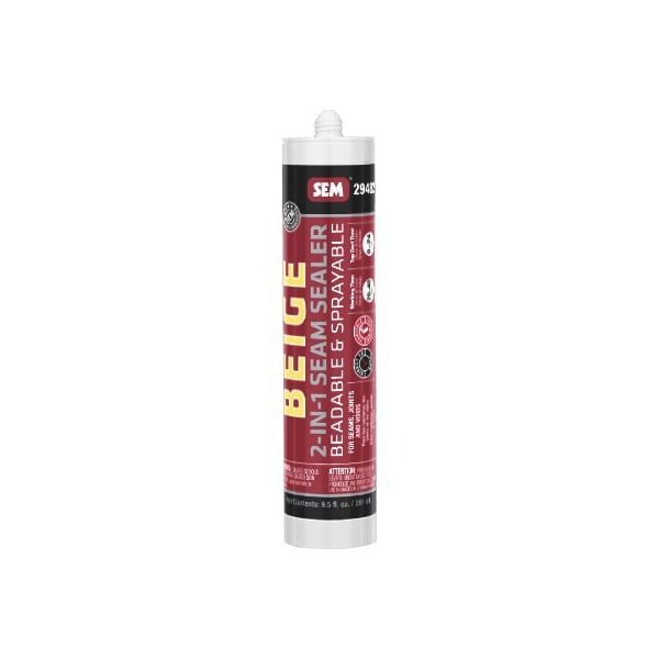 2-in-1 Seam Sealer, 9.5 oz Tube, Beige, Liquid, 24 hr Curing