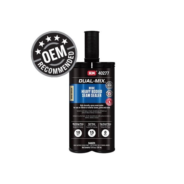 Dual-Mix Heavy Bodied Seam Sealer is a high viscosity, two-component epoxy for use on interior or exterior seams, joints and voids. OEM recommended, Direct to metal, Paintable immediately with most solvent-based paints, Correct color minimizes post-inspection liability, Non-sag formula holds tooling marks, Fast cure increases production, Remains flexible without shrinking or crakcing, Sprayable for additional versatility