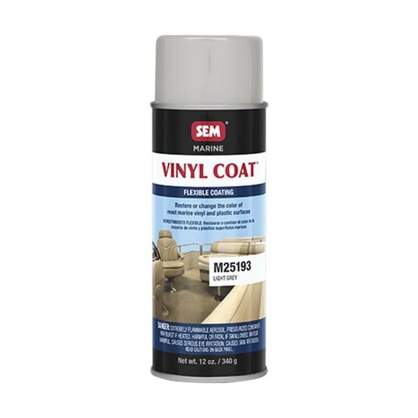 Vinyl Coat is a line of elastomeric aerosol coatings to match, restore or change the color of most marine vinyl and plastic surfaces. Covers stains, fading and prepped mildew. Superior adhesion. Outstanding UV protection. Stays flexible, will not crack. Excellent hiding. Quick drying