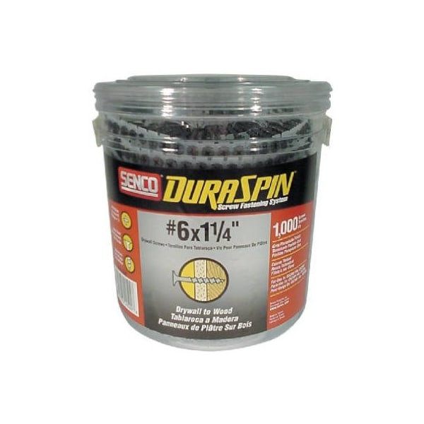 1,000 Count, 114 Length, 6 Shank Auto Feed Drywall To Wood Screw, Gray Phosphate Coating, 50 Screws Per Strip, 2 Phillips Bugel Head, Course Thread, Sharp Point, Stores In Easy To Carry Tub With Handle, Fits Senco Duraspin, Tyrex, Milwaukee, Makita, Grabber Auto Feed Screw Drivers That Use The Pam System, Applications Include Fastening Drywall Wood To Wood