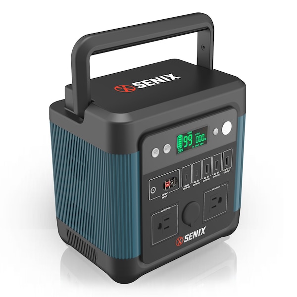 SENIX Portable Power Station 974Wh LiFePO4 Battery Powered Portable Generator, 2 120V 1200W 2400W peak Pure Sine Wave AC Outlets, 3 USB-A, 1 USB-C , and 1 USB-C Fast Charge Output, 12V DC Car Charger Output, LED Light, for Outdoor Camping, Travel, Emergencies PS1200