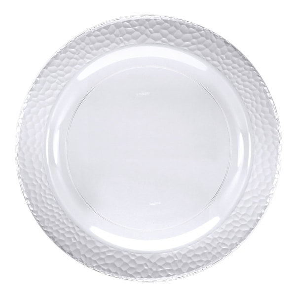 Create a modern flair when you entertain with the Clear Pebble Plastic Plates. These sturdy plastic plates measure 9” and feature a pebbled texture and a clear theme. Sold in packs of 120, these disposable plastic plates coordinate with all Clear Pebble party supplies.