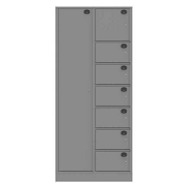 Law Enforcement Evidence Locker, Number of Compartments 8, Material of Construction Steel, Non-Pass-Through, Overall Width 36 in, Overall Depth 24 in, Overall Height 6 5/6 ft, Finish Powder Coated, Color Gray, Lock Type Slam Latch, Assembled