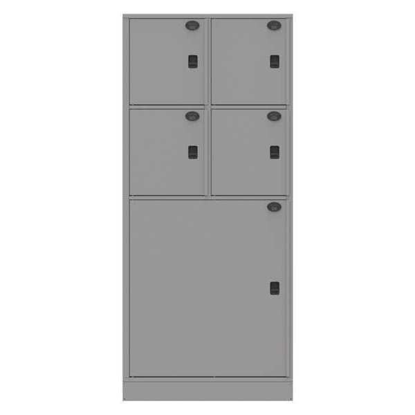 Law Enforcement Evidence Locker, Number of Compartments 5, Material of Construction Steel, Pass-Through, Overall Width 36 in, Overall Depth 24 in, Overall Height 6 5/6 ft, Finish Powder Coated, Color Gray, Lock Type Keyless Lift Latch, Assembled