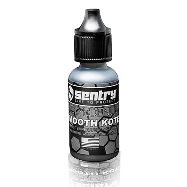 Expanding on the oilfree line of firearm maintenance products, the team at SENTRY created an innovative, Molybdenum dry lubricant barrel treatment SmoothKote Protects internal surfaces against friction, fouling, and wear Fast drying and microbonds to metal for excellent lubrication from 65Degrees F to 650Degrees FNonstick shield repels dirt and eliminates grime Extreme fouling reduction enhances accuracy, bullet velocity, and reliability Bore treatment without the buildup, no need to adjust charge weight Makes routine maintenance simple