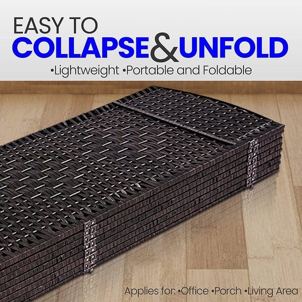 Features: - Strong and Durable Hand Crafted Panels - Lightweight, Portable, and Foldable - Easy to Collapse and Unfold - Quick Way to Create Temporary Privacy - Two-way Hinges - Better Privacy Screen - Folding Partition & Wall Divider - Indoor Decorative 4 Panel Screen - Applies for Office, Porch, Living Area to Block Off Sensitive Areas What's in the Box: - 8-Panel Room Divider Technical Specs: - Construction Materials: Wood and Paper String - No Assembly Needed - Product Dimensions: 70.87'' x 19.69'' -inches